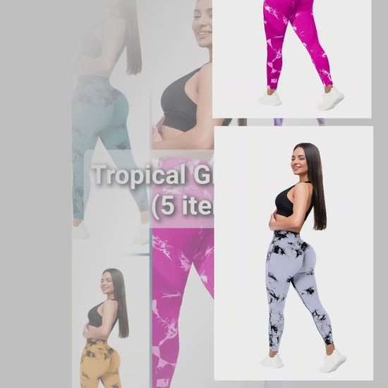 Tropical Glow Pack of Women’s 5-Pack Tie-Dye High Waist Tummy Control Leggings